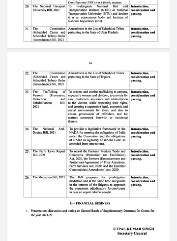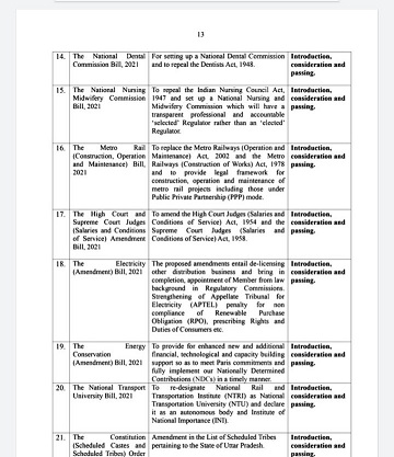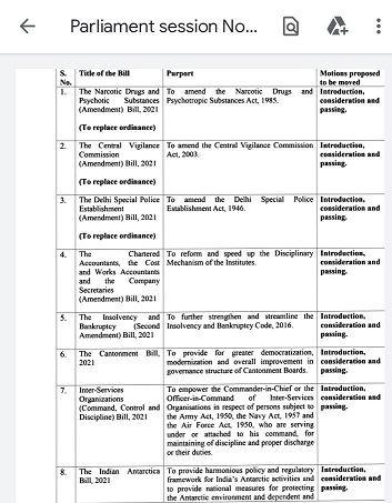 Various other bills which will be presented in winter session includes agricultural bill for which our Hon’ble PM had made announcement and in total there are 26 bills which can be seen as under: