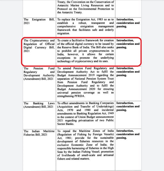 Now, it is being said that in the winter session of parliament (which will begin from 29.11.2021, government of India is ready to present the cryptocurrency bill by the name of “The cryptocurrency and regulation of official digital currency bill, 2021” wherein the intention of the bill is as under: