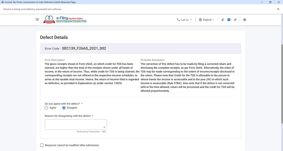 Whereas, if we check the full ITR we can see that the income has been offered to tax and the corresponding TDS head has also been correctly chosen. They are giving only 15 days time to respond to such defective notice issued u/s 139(9) of the Income tax act and if one fails to respond to such notice it will be considered as if the return was never filed.