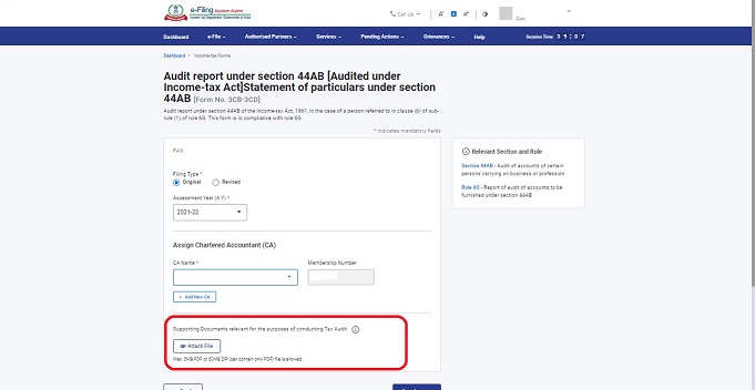 Once you Add CA, you need to go to E-file –> Income Tax forms –> File Income tax forms and then from there select Form 3CA-3CD or 3CB-3CD (available under “Person with business/ profession income) as applicable.