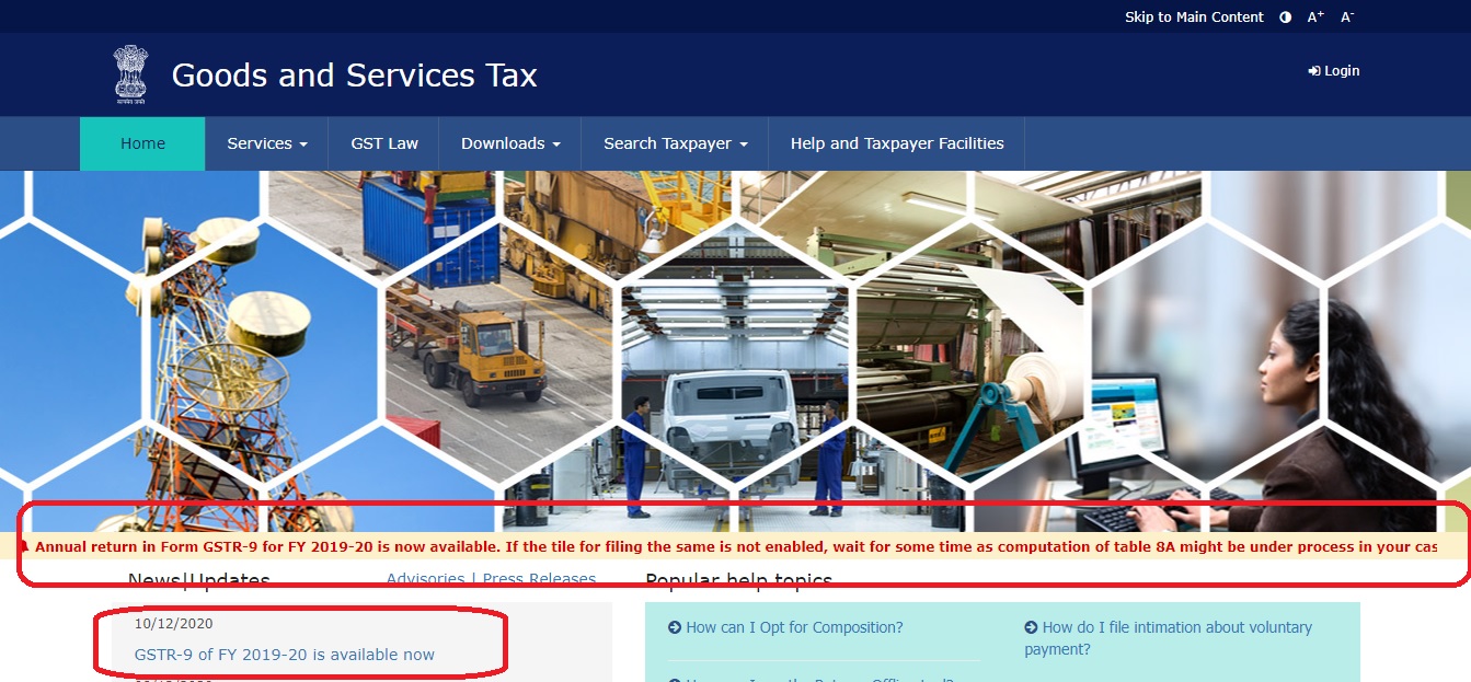 GSTR 9 – Annual return for FY 2019-20 is now available on GST website for filing