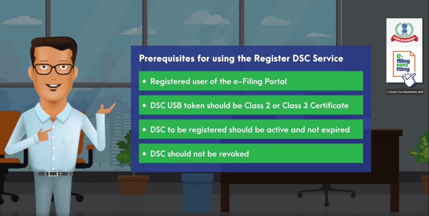 - Having valid and active Class 2 or Class 3 DSC and as per recent updates now any new DSC prepared by the assessee needs to be Class 3.