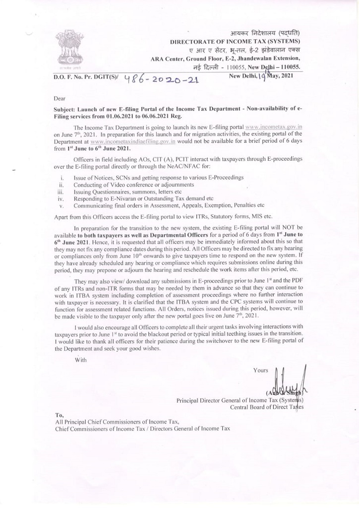 CBDT has made an announcement wherein it has been mentioned that CBDT is going to launch new income tax e-filing website https://www.incometaxindiaefiling.gov.in/home from 07.06.2021.