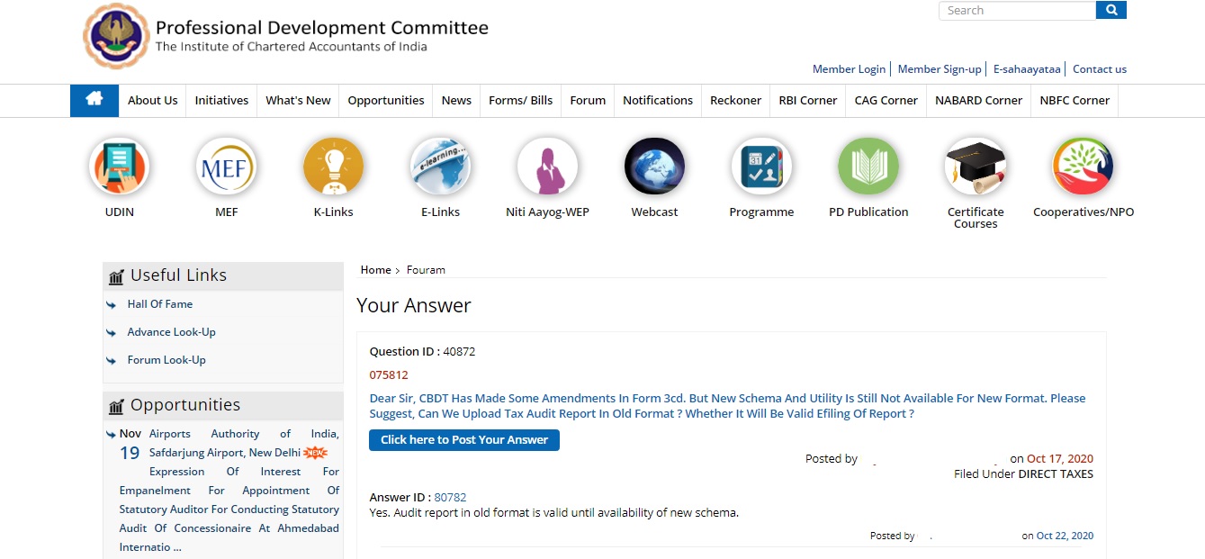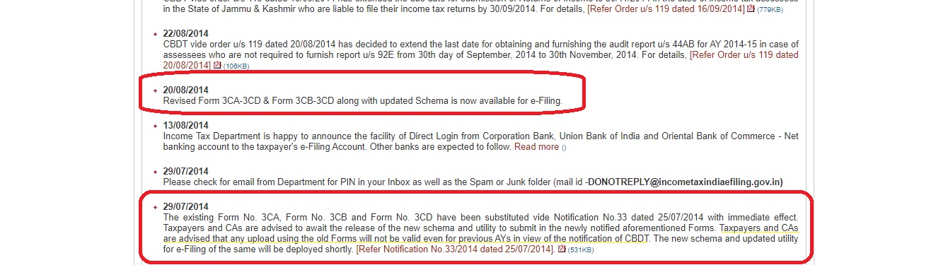 Hence, it can be said that 3CD won’t be rejected and no one would be required to file their tax audit report again but there is old clarification CBDT on e-filing website from 2014 wherein they have mentioned that once new schema has been announced tax audit filed in old schema would be invalid even if new schema/ utility is not available: