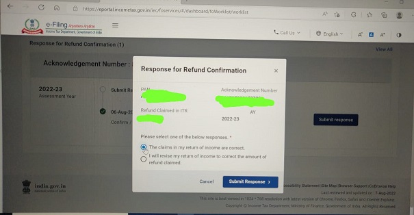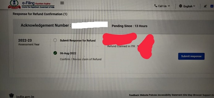 To submit the response, please login to e-Filing portal >>Pending Action >>Worklist>> ‘Response for Refund Confirmation’ and select the correct option.